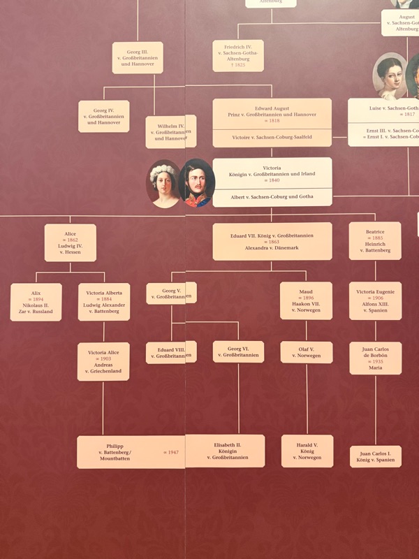 1719 wurde Prinzessin Augusta von Sachsen-Gotha-Altenburg geboren, die 1736 den Prinzen von Wales heiratete - das war quasi schon ein "foreshadowing" a là Shakespeare. Ihre Urenkelin, die künftige Königin Victoria von Großbritannien und Irland, heiratete 1840 Prinz Albert und begründete damit die Dynastie Sachsen-Coburg und Gotha in England.
