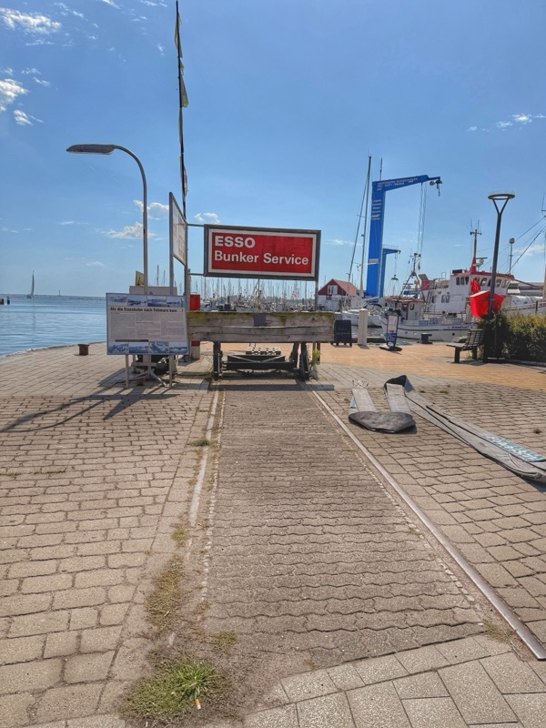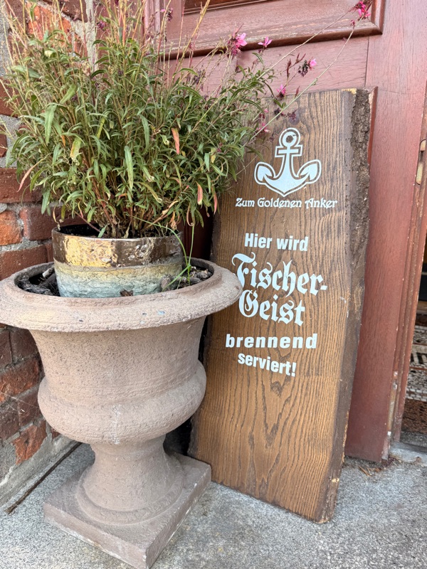 Direkt gegenüber des Restaurants wird gerade ein Schiff mit Getreide beladen. Morgen fährt es dann nach Hamburg (sagt uns ein Crewmitglied).