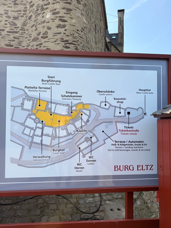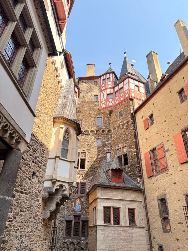 Es ist deutlich zu sehen, dass in den ersten 400 Jahren ihrer Existenz immer mal wieder angebaut wurde. Und das wundert auch nicht, denn dort haben drei Familien der Grafen von Eltz zusammen gewohnt. Und auch noch heute ist die Burg in 34. Generation im Besitz der Familie.