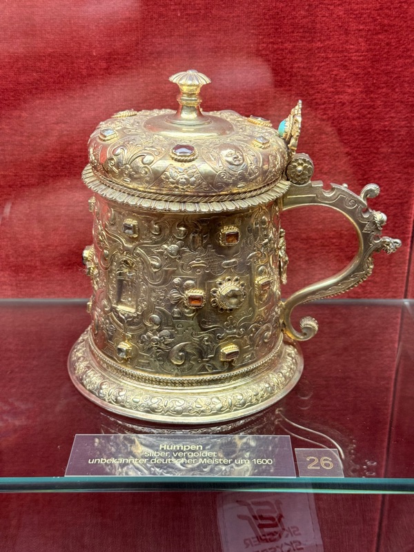 Wir schließen uns der spannenden Führung durch die verschiedenen Gemächer an - Innenaufnahmen der Burg sind leider nicht erlaubt. In der Schatzkammer zeigt sich dann der Reichtum, der u.a. an Exponate aus dem grünen Gewölbe in Dresden erinnert.