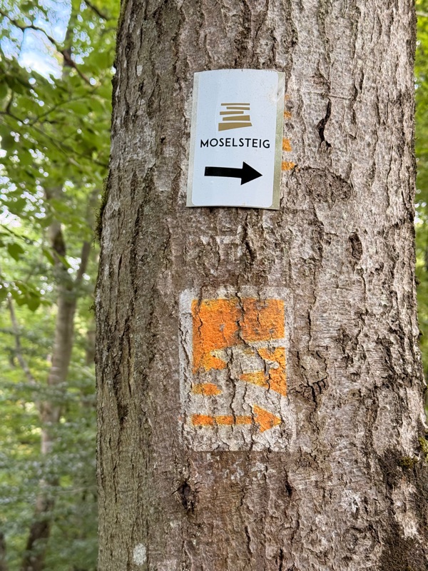 Nach einer Stärkung in der Burgschänke wandern wir zurück an die Mosel.