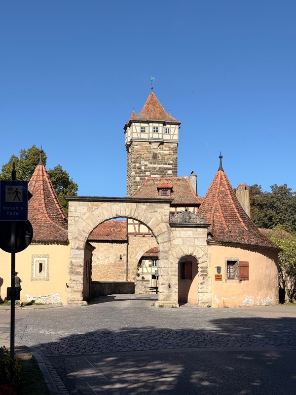 Rothenburg ob der Tauber ist auch tatsächlich sehr niedlich. Die historische Altstadt versteckt sich hinter einer wehrhaften Stadtmauer und ist größtenteils erhalten.